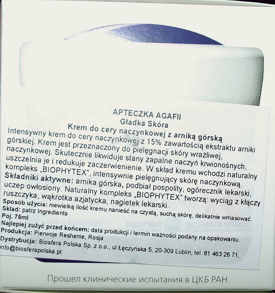 * Krem do Cery Naczynkowej z Arniką Górską Gładka Skóra, Apteczka Agafii
